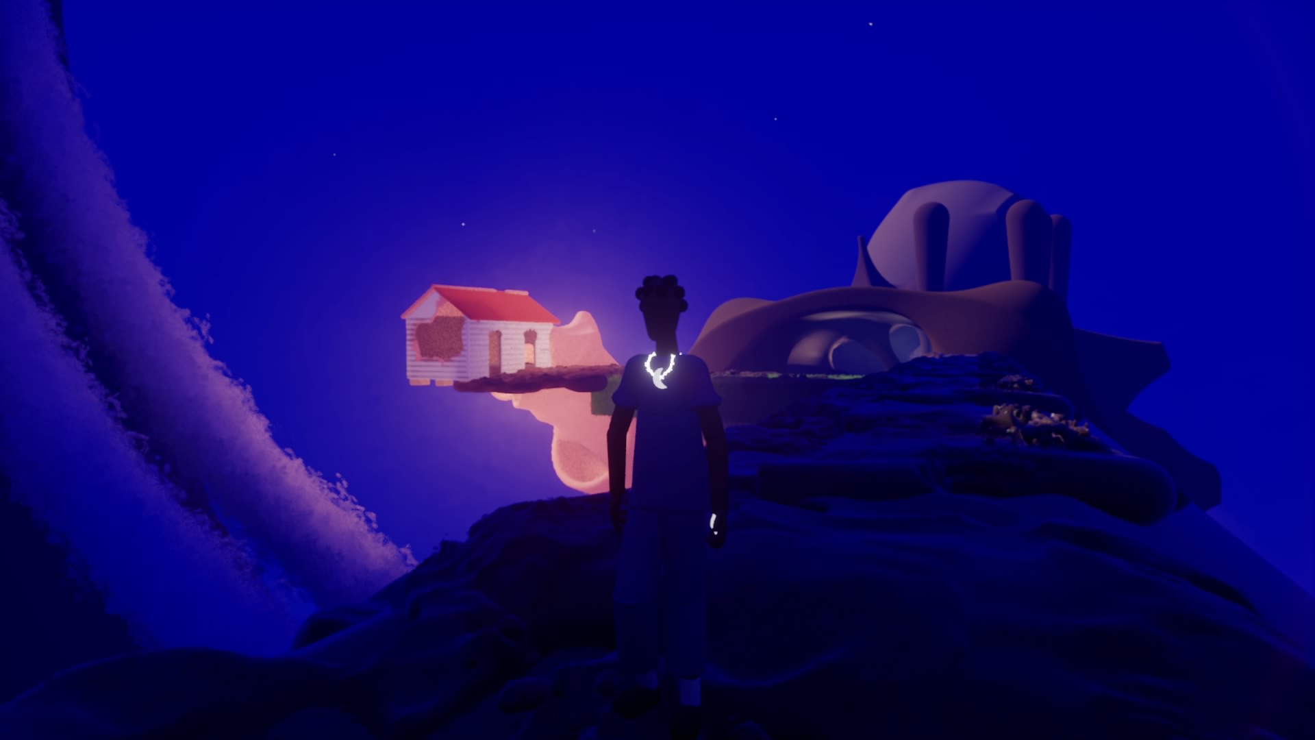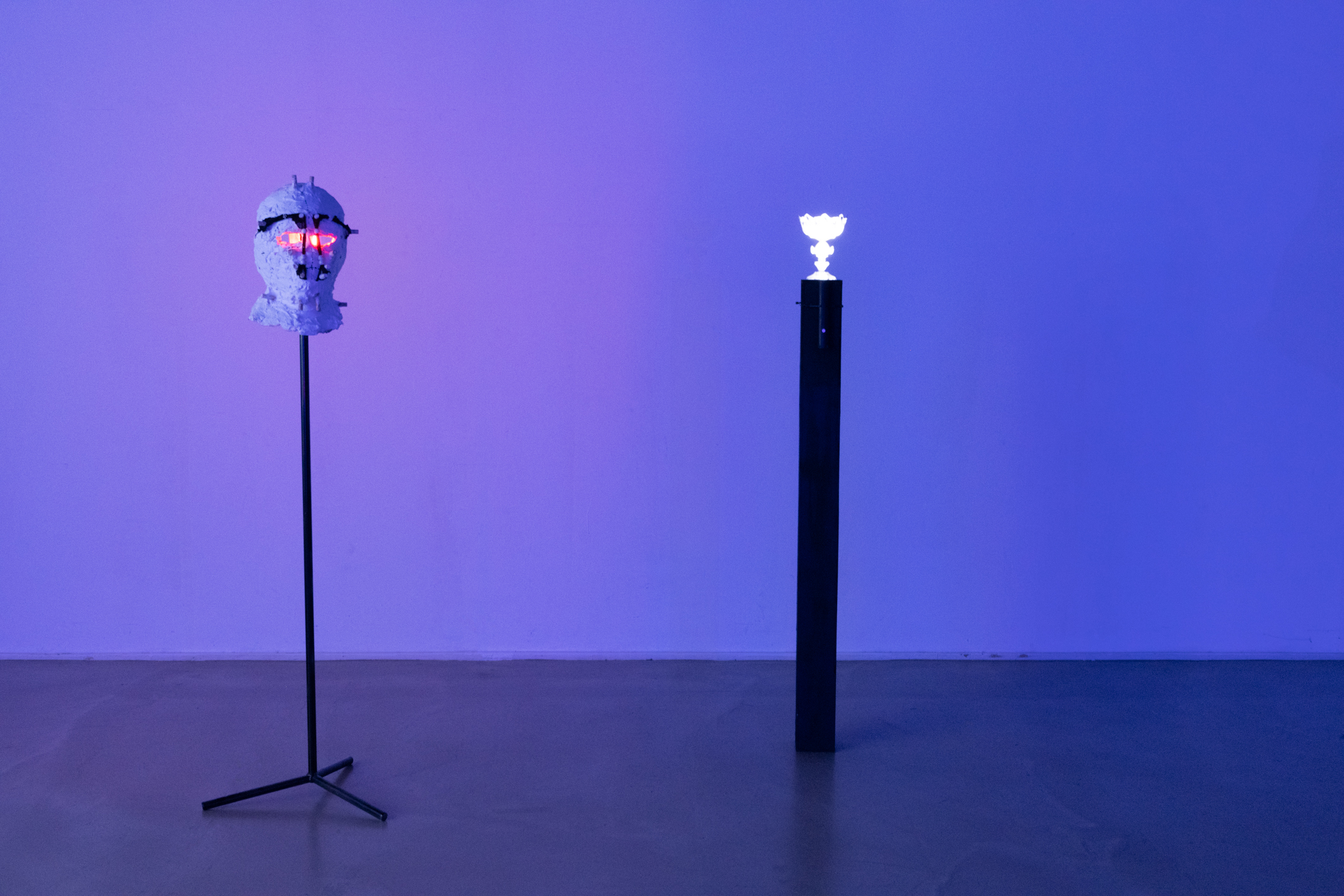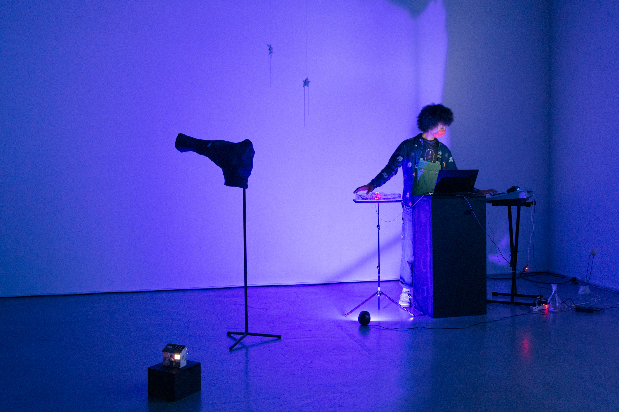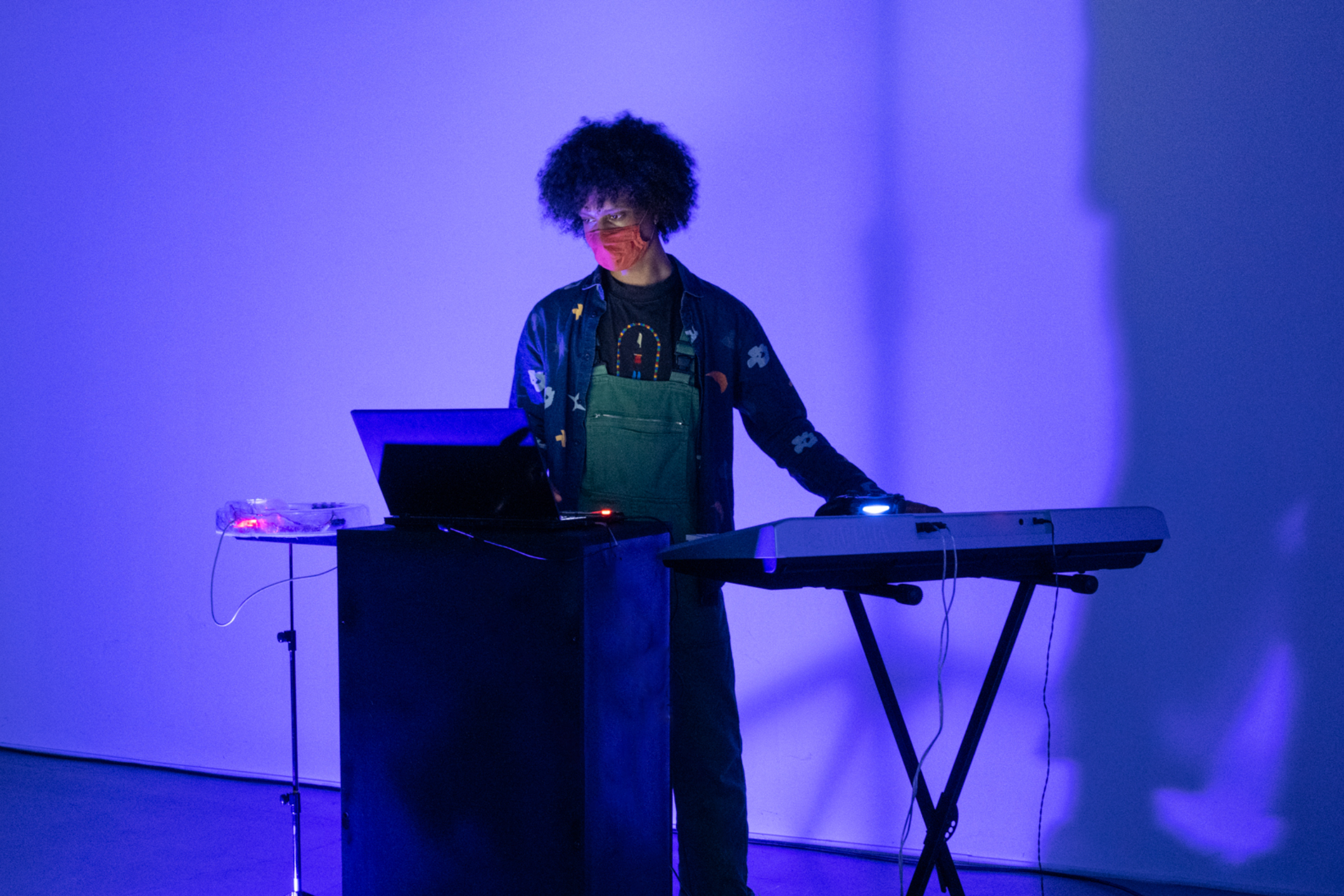 In the video game at the core of the project, the player takes on the role of a marron (a term used in slavery context to describe a slave who has run away from his master’s plantation). The performance takes the form of an immersive video game screening inside a sculptural installation. The sculptures are items, masks of some NPCs present in the game. The screening is accompanied a musical performance played on synths, controllers and Infra-red theremin.